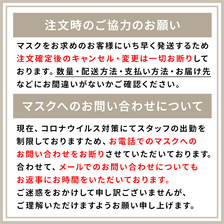 ) ・マスク関連商品以外との同時注文は出来ません。