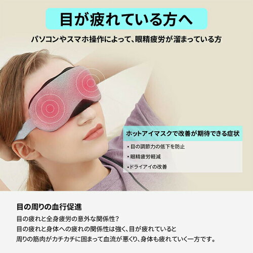 ホットアイマスク USB 電熱式ヒーター 疲れ緩和 睡眠改善 洗える 繰り返し使用 タイマー設定 温度調節 遮光 軽量 旅行 出張 仕事 昼休み 睡眠アイマスク ギフト プレゼント